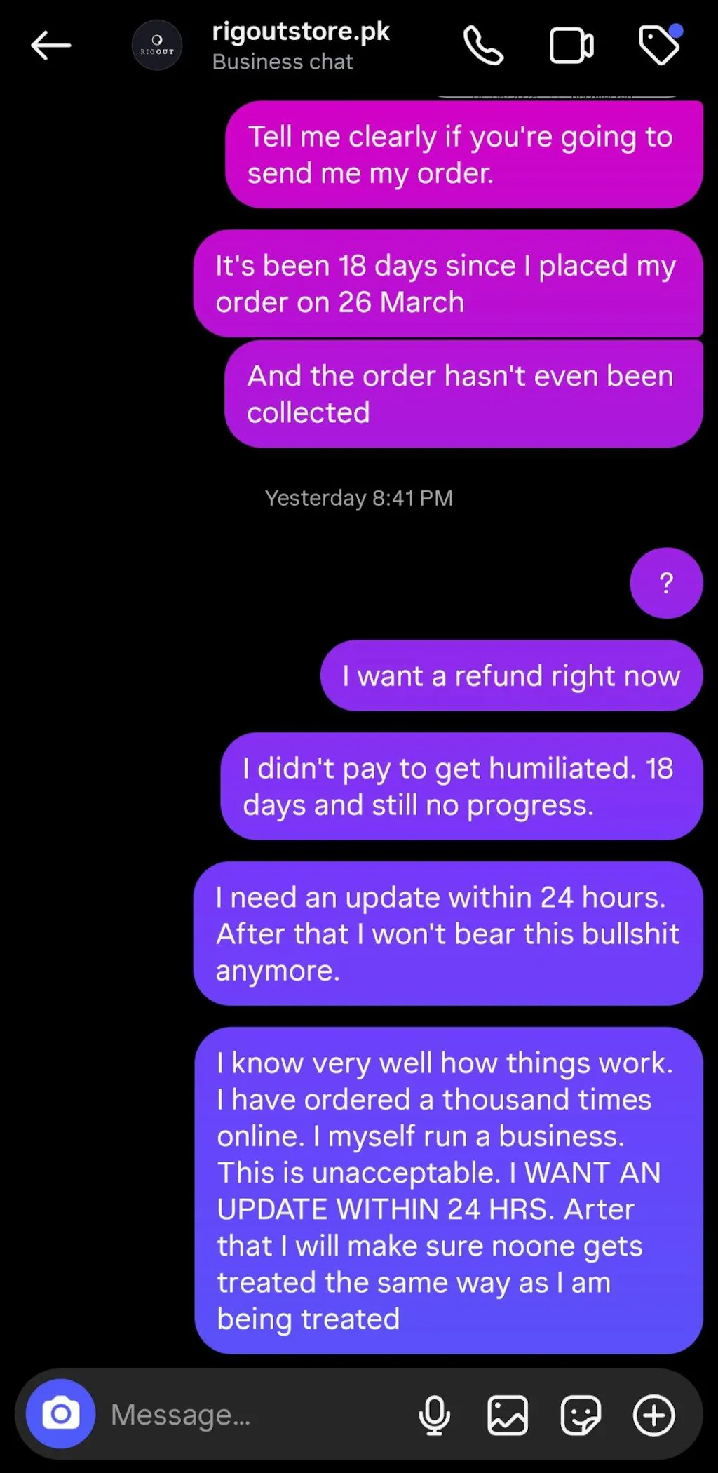 Please reach out to our Customer Support team at SUPPORT@RIGOUTSTORE.PK and they will help to resolve the issue.