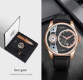 The Tomi Dual Face Gear Leather Strap Watch in 45mm comes with two leather straps.