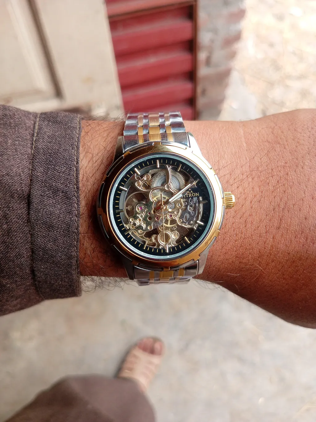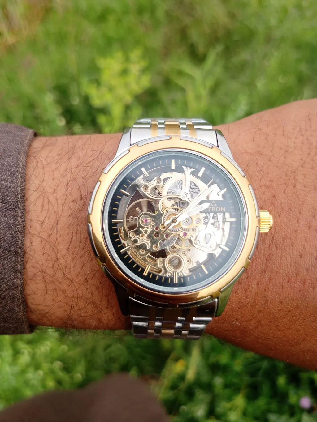 RIGOUT watch comes with is automatic self-winding mechanical movement, it is powered by the motion of the wearer's wrist with skeleton dial.